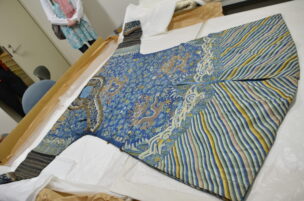 皇帝服ロンパオは二人の職人が大きな織機を2年間操り、完成するほどの豪華なもので、当初は織物であったが、技術の発展と共に近代に近い者は染色によるマンパオが流通するようになった。今でも、中国本土では本物のロンパオは数百万の値で取引されているそうです。